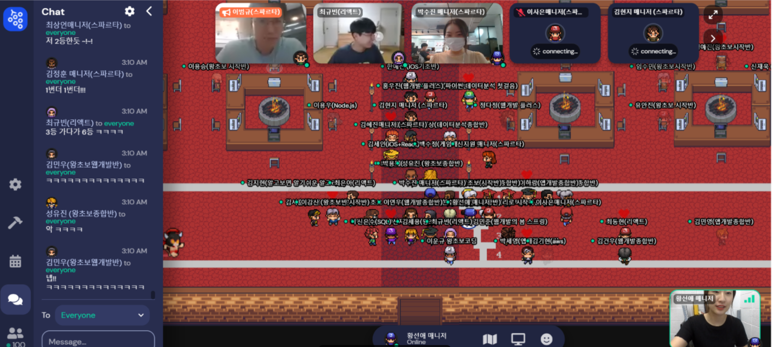 코딩 마라톤이라고 코딩만 하나! 달려야지! 하면서 100명이 캐릭터움직여서 달리는데 너무 웃겨ㅋㅋㅋㅋㅋ